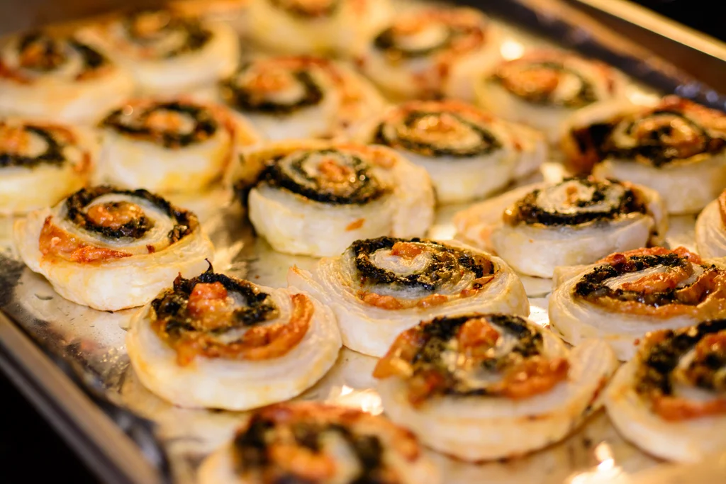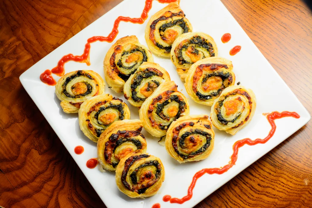 - Unfold the pastry sheet onto wax paper. Spread the spicy sauce gently with a butter knife onto the whole sheet.